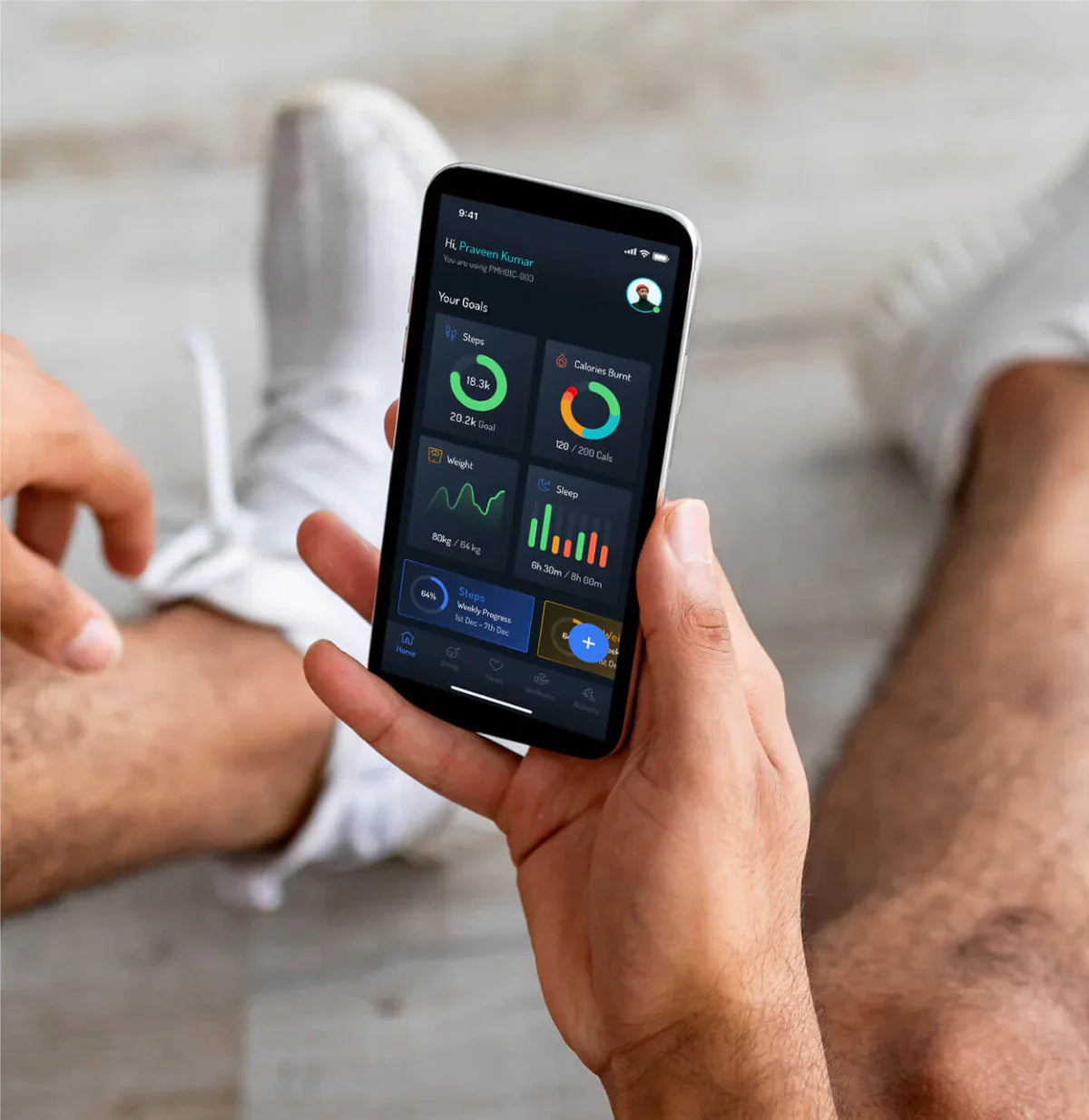 Give 100% – track wellness goals. Our proprietary technology assesses sleep scores, stress levels**, heart rate, and overall body mass index (BMI). -